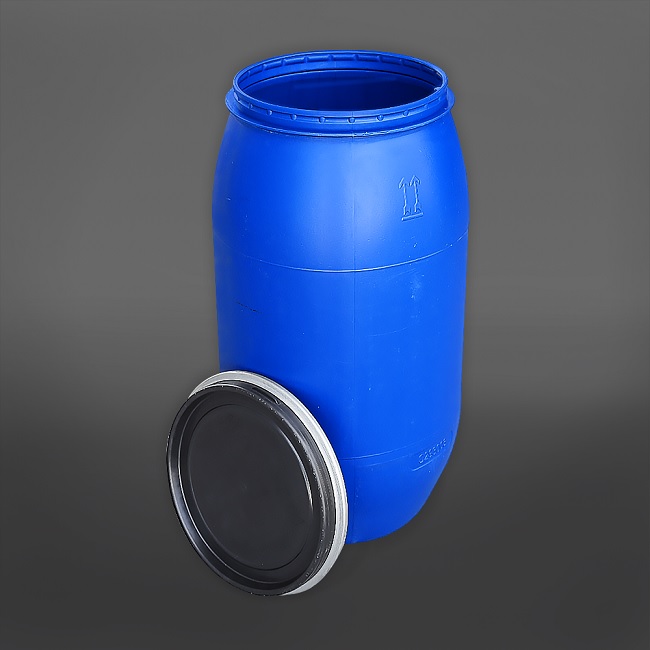 Tambor Plástico 160 Litros Tapa Móvil Reacondicionado, fabricado en polietileno de alta densidad (PEHD) con tapa móvil y cierre mediante aro palanca. Este tambor se encuentra en perfectas condiciones, siendo ideal para aplicaciones industriales como el almacenamiento y transporte de productos químicos, aguas contaminadas, minerales, grasas, y como contenedor de basura para recintos de alto trafico entre otros.